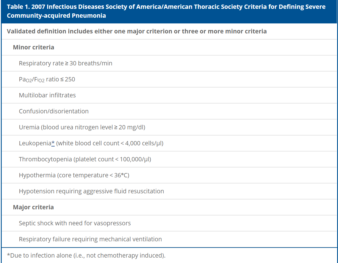 - Severe is 1 Major Criteria or ≥ 3 Minor Criteria