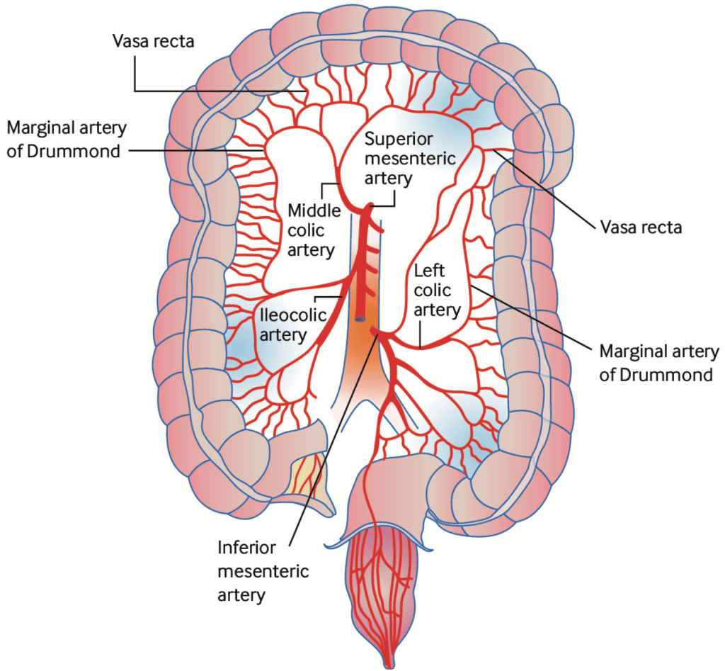 A 72 y/o F being managed on the floor for sepsis due to a problematic urinary tract infection starts to complain of acute onset LUQ abdominal pain. She describes abdominal pain out of proportion to your physical exam, one that includes mild signs of distension without peritoneal signs. She now has occult blood in the stool. Aside from leukocytosis and an elevated lactic acid, her initial lab studies are unremarkable. You go through your GIB and abdominal pain diagnostic algorithms and immediately, you pause as you place “ischemic colitis” at the top of your differentials. How do you approach ischemic colitis? Lets review the basics.