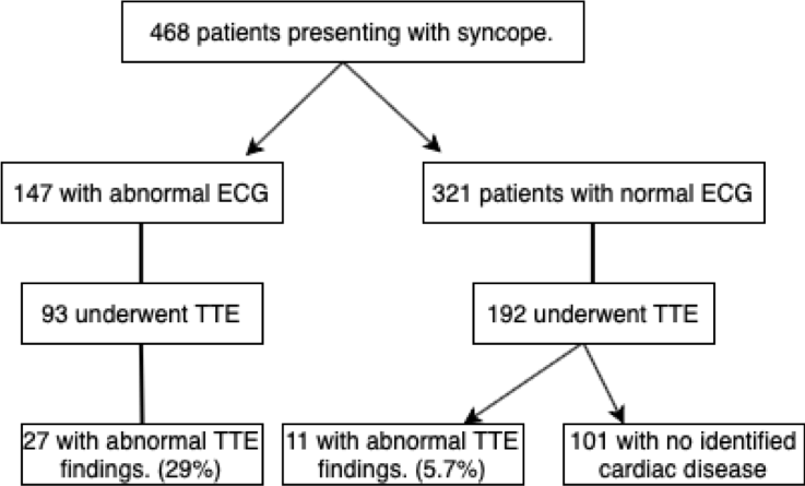 A more recent study aimed to assess the role of transthoracic echocardiography in evaluating patients who presented with syncope with a normal versus abnormal ECG. This study by Chang et al. in 2016 had 468 patients.
