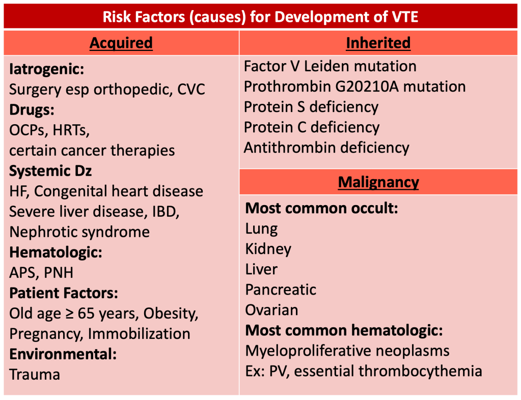 Understandably, it would be unreasonable to test everyone for all of the causes of a blood clot every time someone presents with a VTE. It’s a game of numbers. We can try and narrow down our differentials based on information easily obtainable by the history, physical exam and initial lab tests and imaging.