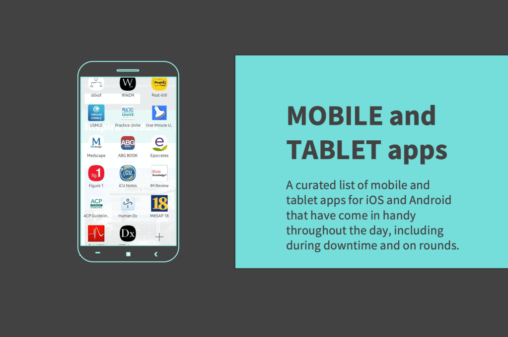 - MKSAP: the app is great for doing questions and flashcards during downtime (G/A)